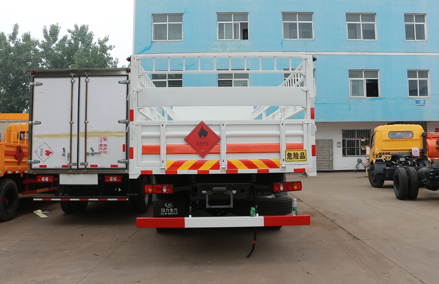 1、厢体部分:厢体为双层金属骨架结构,外部为冷扎钢板,内壁采用铝合金板蒙面,夹层为隔热阻燃材料填充。设置对开门,侧壁设有防雨功能自然通风窗口,以使厢内外空气流动,厢体内部做防静电处理,厢体底部与厢内前部铺有阻燃导静电胶板,并与底盘等电位连接,通过车辆后端的导静电装置与大地相连,可防止静电火花的产生和车辆静电及时释放,提高易燃气体厢式运输车的安全性。厢体内部前面和侧面装有固定拉环,与捆绑带使用捆绑货物以避免移动,保证安全。