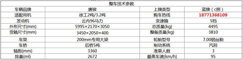 > 唐骏3.2吨随车吊: