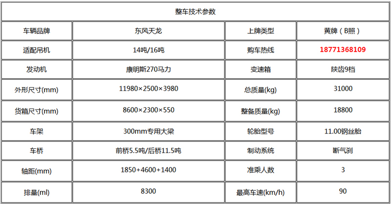 > 东风天龙16吨随车吊: