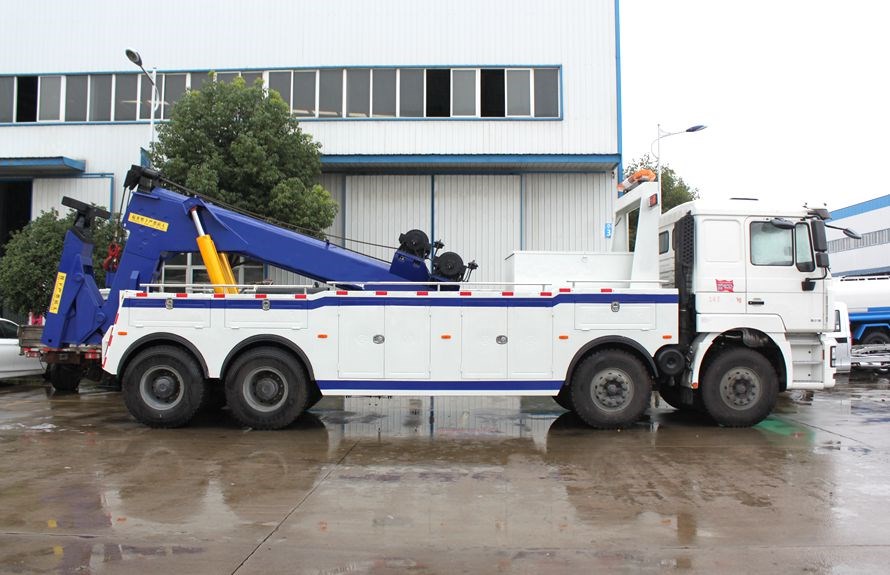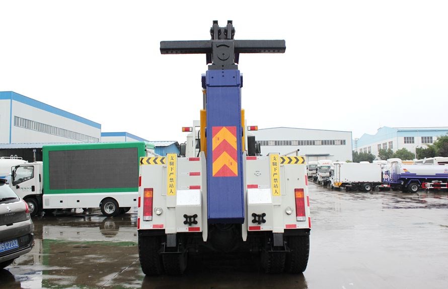 上装配置:陕汽德龙前四后八重型清障车,20T MAN双极联体上装(可加装25吨的加强型配置),二节式六边型吊臂,三节托臂,分体式车厢,进口液压系统,双侧联动操作,遥控操作装置一套,前保险杠装有配重,拖车性能更加稳定。配2个10吨液压绞盘,45米钢丝绳,直径18mm,配4套钢叉,一套钢板吊耳拖叉,一套U型抱胎装置,随车工具一套,辅助灯总成1套,辅助气管总成1套,配黄色长排LED警灯一个。我公司清障车采用国外先进娴熟产品技术、生产工艺,全进口密封件,加强型横梁固定,增强了承载能力。