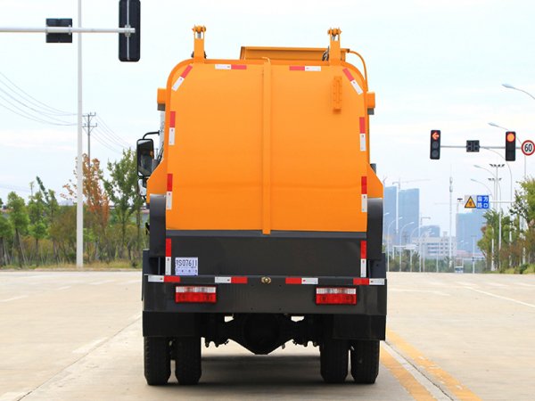 4、改装部分具有装、卸垃圾自动化程度高、工作可靠、密封性好、装载容积大、操作简便、作业过程密闭,无污水泄露和异味的散发,环保性好等特点。