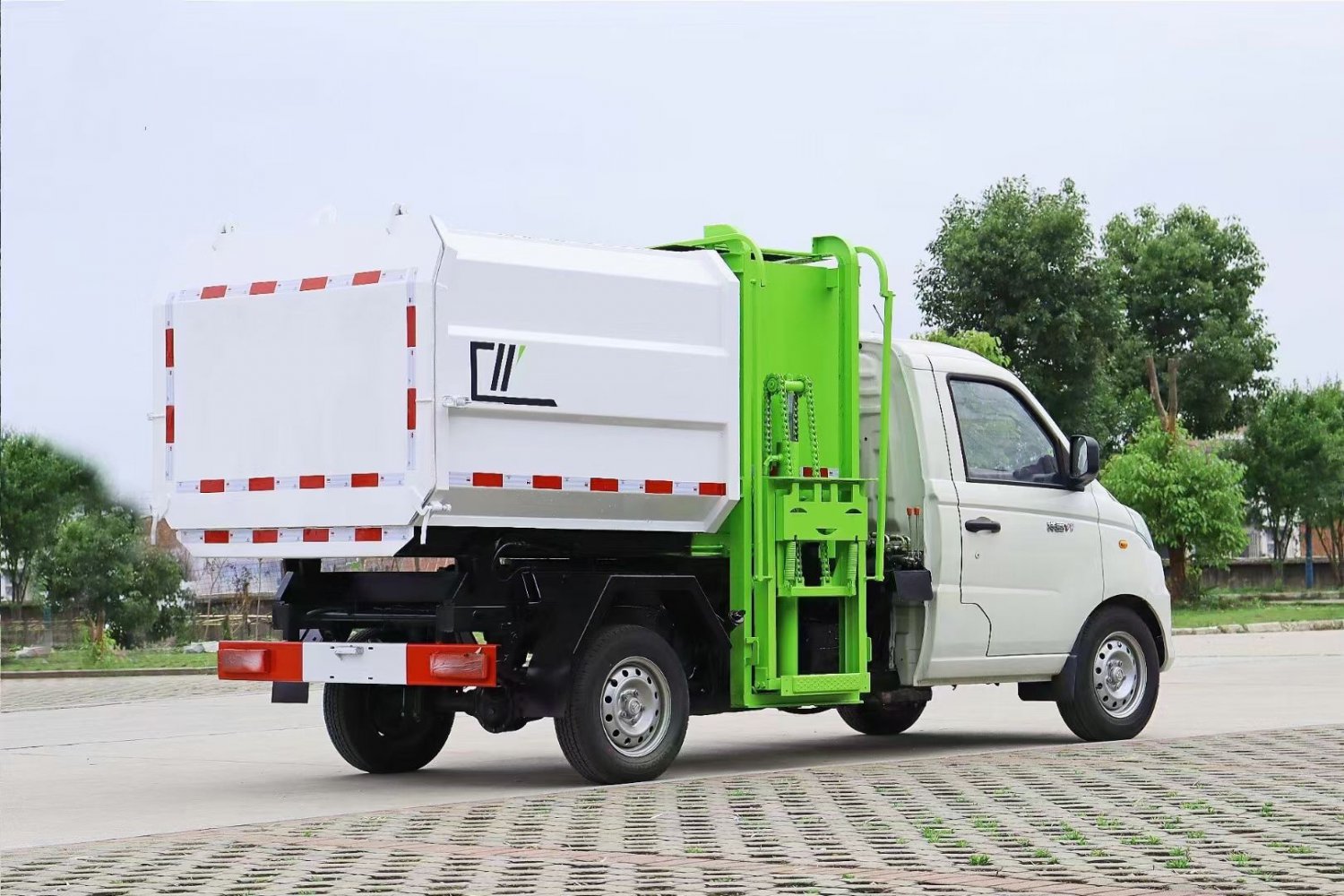 上装配置:容积4方,全密封结构,带液压挂桶提升架,可挂120L/240升垃圾桶,箱体双缸液压自卸,尾门手动打开,带弹簧锁扣,手动室外操!