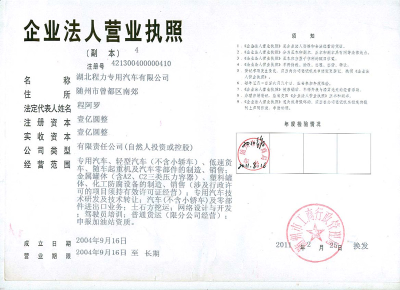 点击查看湖北程力专用汽车有限公司最新更新营业执照:http://www.hbcljyc.com/news/carnews305.html